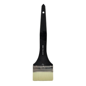 Seven shapes. A range of sizes and handle lengths. Designed with specific techniques in mind - from large canvas coverage to murals. Synthetic bristles are selected to suit the end purpose - for masonry, effects or smooth surfaces. Black non-slip matte-satin wooden handles are shaped to fit the hand and technique. Stainless steel ferrules are durable and rust-proof. Select from Universal Flat, Universal Angle, Broad Flat (long or short handle), Splatter, Paddle and Giant shapes.