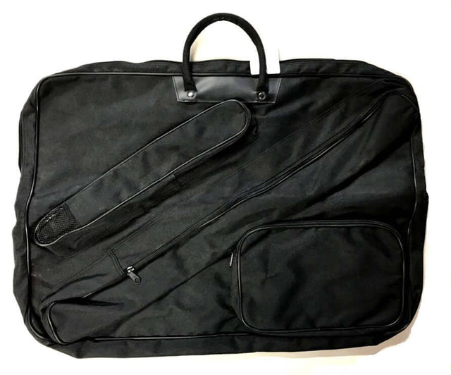 This handy portfolio is great for the artist on the go! With convenient shoulder straps on the back, you can carry this portfolio like a backpack.It measures approximately 17" x 24" and has a 2" gusset. There are three outer zippered storage areas in the front of this portfolio. The sketch pad pocket measures approximately 7" x 10", the tripod approximately 27 1/2" x 3" and the brush pocket approximately 15 1/2" x 3".